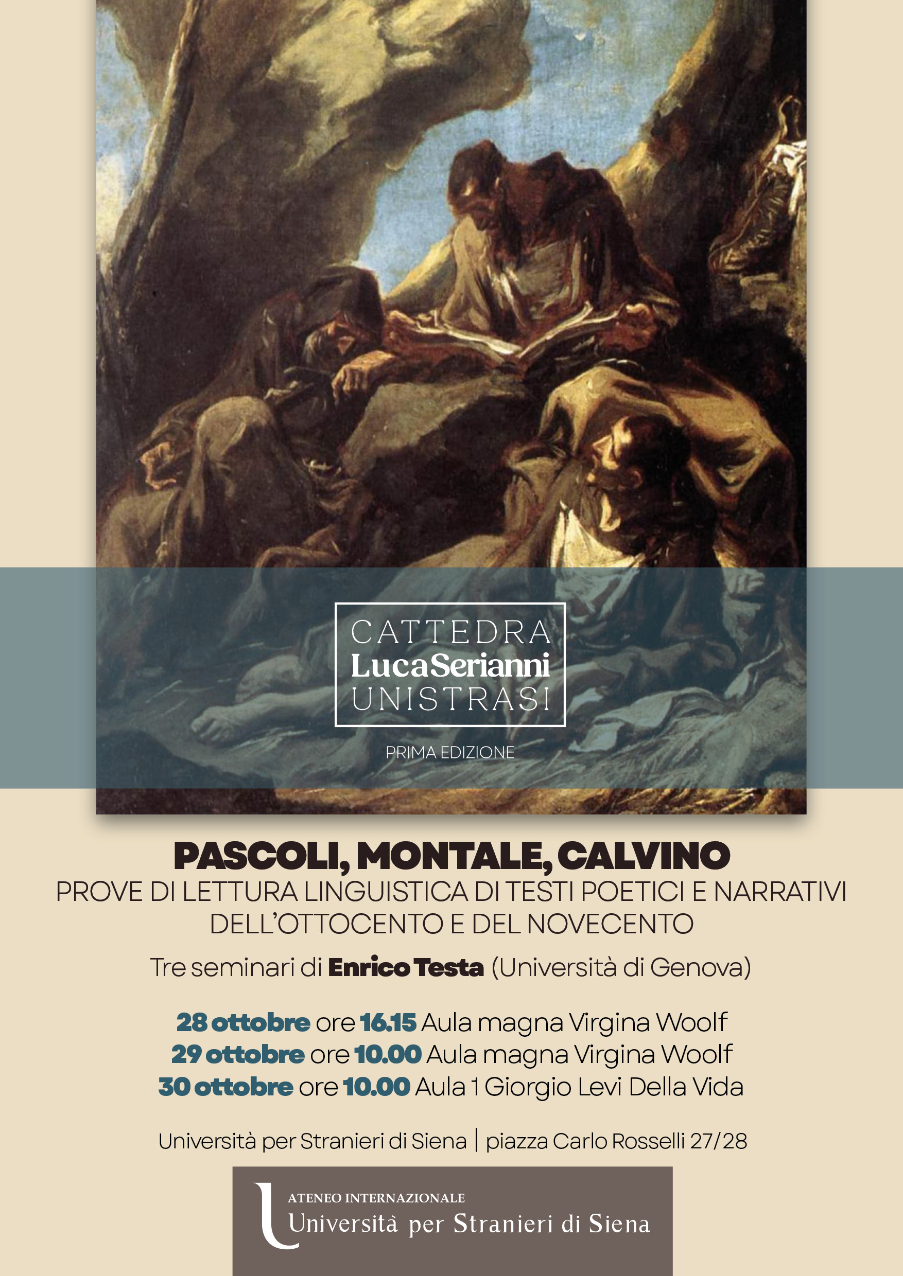 Dal 28 al 30 ottobre 2025 si terranno le lezioni inaugurali della Cattedra Luca Serianni, istituita dall’Università per Stranieri nel 2024 per tenere vivo il magistero dell’illustre storico della lingua italiana, prematuramente scomparso nel 2022. La cattedra sarà inaugurata con un ciclo di tre seminari dal titolo "Pascoli, Montale, Calvino: prove di lettura linguistica di testi poetici e narrativi dell’Ottocento e del Novecento" tenuti da Enrico Testa (Università di Genova), poeta e storico della lingua italiana.